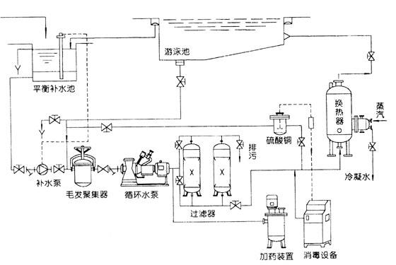 游泳池的循環(huán)周期和循環(huán)流量是一個問題的兩個方面。循環(huán)周期和循環(huán)流量的確定,是水處理設(shè)計的前提,它決定系統(tǒng)處理能力的大小,總造價的高低,和常年運(yùn)營費(fèi)用的多少,因此,它是游泳池水處理設(shè)計最重要的數(shù)據(jù)。