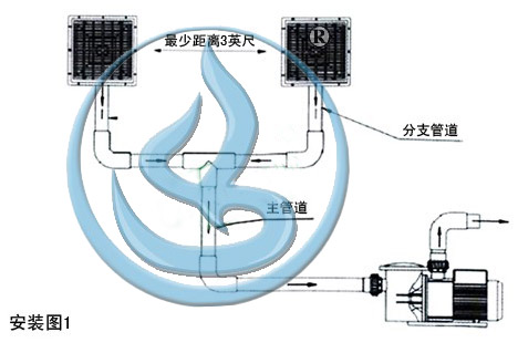 安裝時(shí),兩個(gè)防吸排水口都安裝在泳池底部即可,注意間距要超過1米。