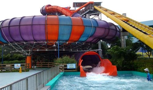 巨獸碗滑梯又稱旋渦滑梯,游客乘坐皮筏,從高13.5米多的平臺(tái)口滑下,通過了一段長達(dá)幾十米的全封閉的管狀滑道之后,會(huì)高速?zèng)_入一個(gè)直徑為15米的巨碗,在離心力的帶動(dòng)下,游客好象在太空中旋轉(zhuǎn)一樣,讓人目眩神迷,最后被吸入碗中間的洞口,游客會(huì)享受難忘的滑行體驗(yàn),尖叫聲將伴隨滑行的始終。